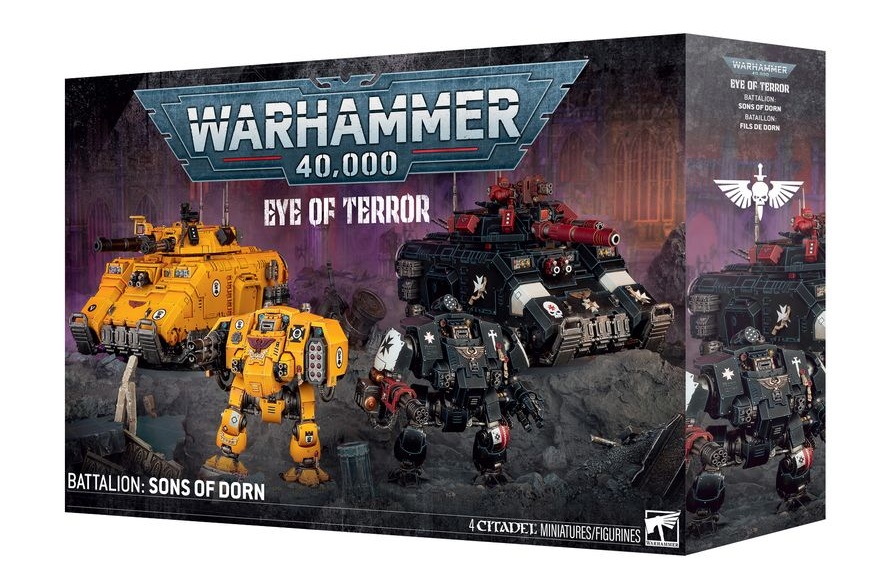– Eye of Terror: Reign of Iron – Detachments – A 16-page booklet including new detachments for Chaos Space Marines (Warpstrike Champions and Cult of the Arkifane), Space Marines (Ceramite Sentinels), Chaos Knights (Helhunt Lance), Imperial Knights (Freeblade Company), and the Adeptus Mechanicus (Eradication Cohort).