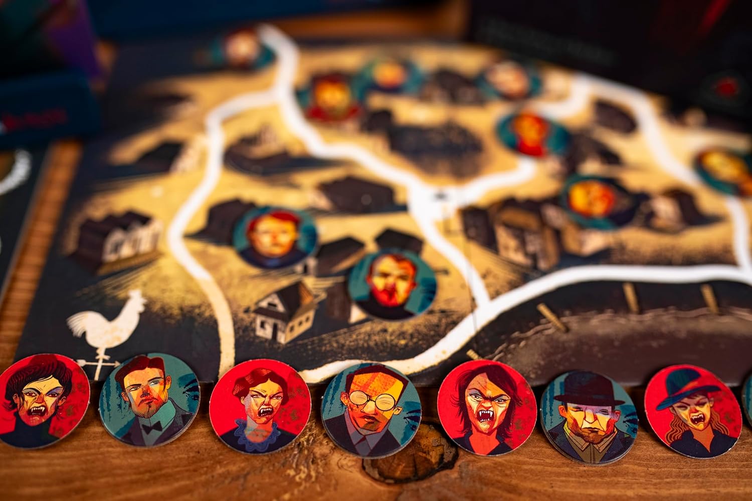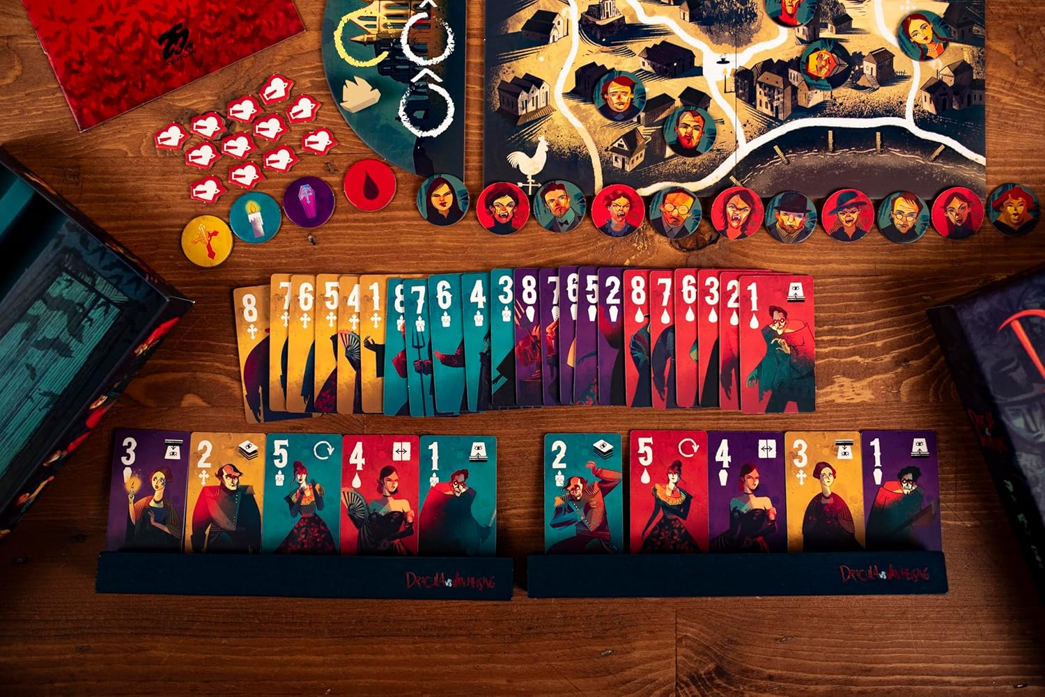 The game ends when Dracula turns four humans in the same district, or Van Helsing removes all of Dracula’s health points.