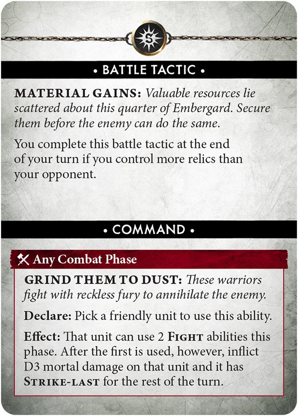 The Battle Tactics are going to revolve around relics for thematic purposes so let’s get into what those will be in the City of Ash!