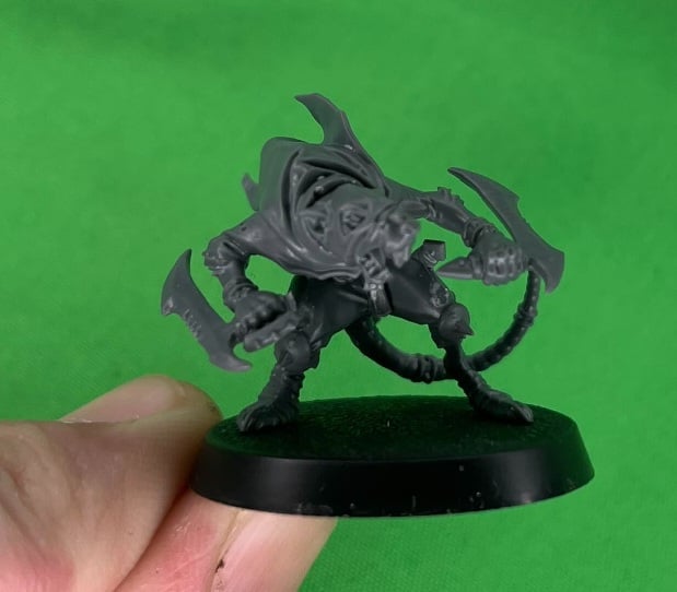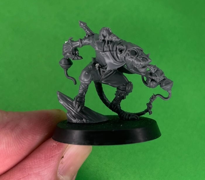 Leading the charge for the Skaven we have Deathmaster Crixxit. This model is really impressive as he’s basically a Deathmaster dialed up to 11. I can respect a ninja assassin that’s this showy! He’s got to be a terror if he’s willing to perch on that rubble, right? Anyhow, It’s a wonderfully detailed miniature and I think this is one the hobbyist side will really enjoy painting up.