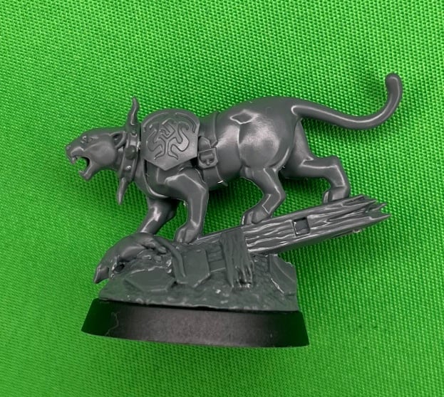 These are neat miniatures for sure. I didn’t really think about the fact that Kreel is basically standing on top of the rubble of some roof. I think it’s a subtle nod that he’s not all brawn when it comes to tactics or abilities. He’s the heir of the Kraken after all! He’s a leader but he’s not loaded up in heavy plate like the Gallants for example. It’s an interesting idea. Also, that’s a cool ash panther, too!