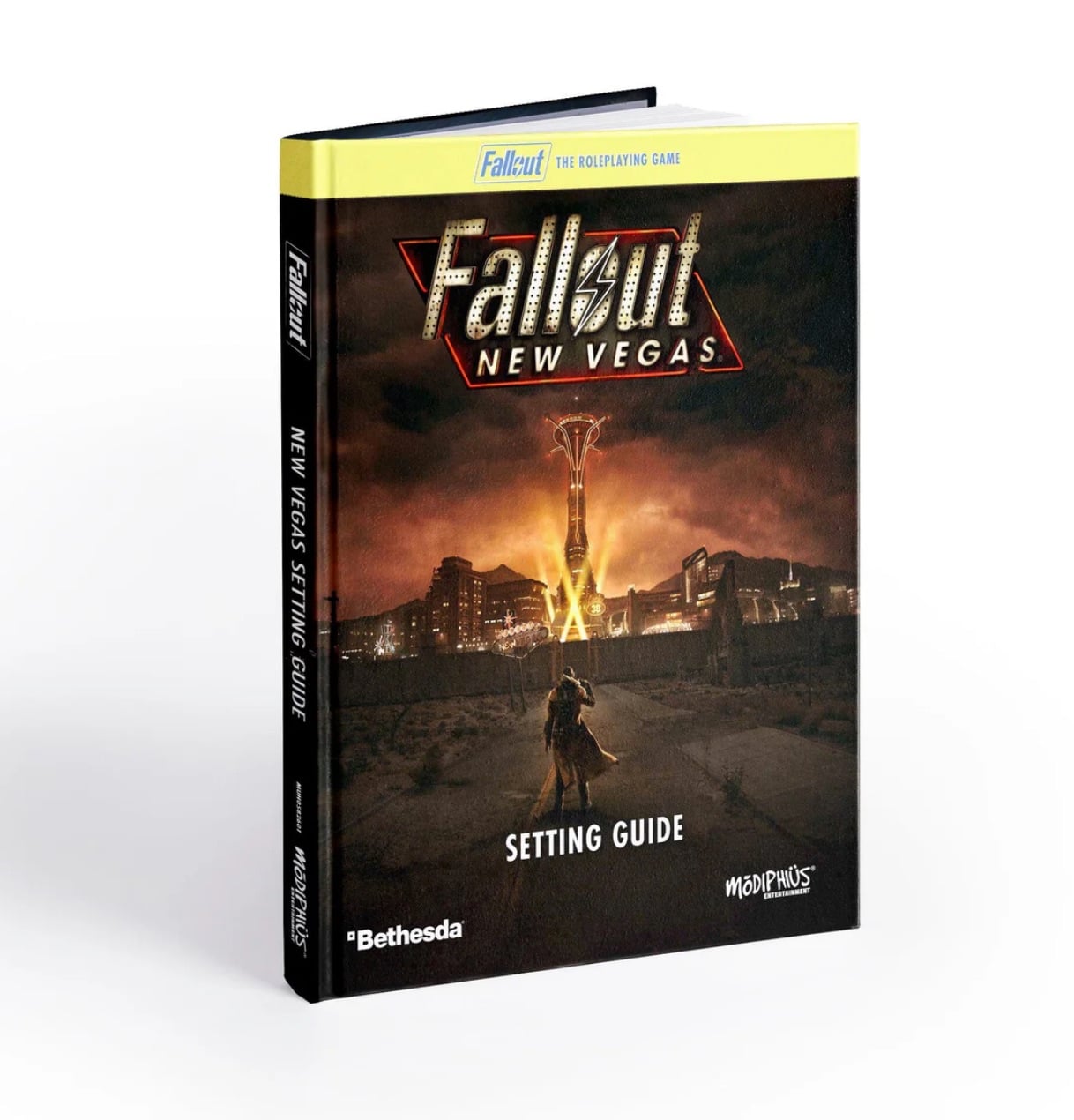“The New Vegas Setting Guide enables Fallout RPG players and gamemasters to learn about the many iconic locations in and around New Vegas and encounter the characters and creatures that dwell there. Players will also find new character options, including backgrounds, perks, traits, and plenty of gear with which to build and euqip their characters before setting off to explore the Mojave.