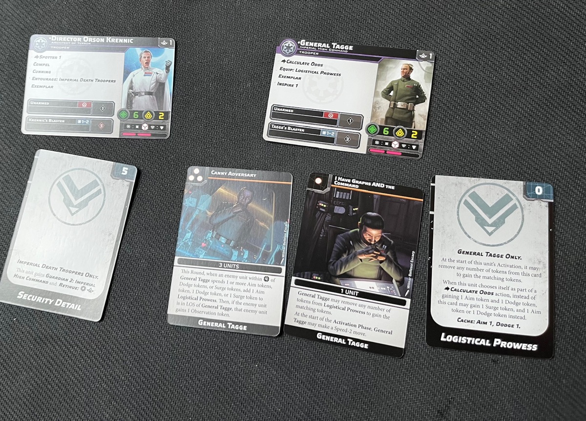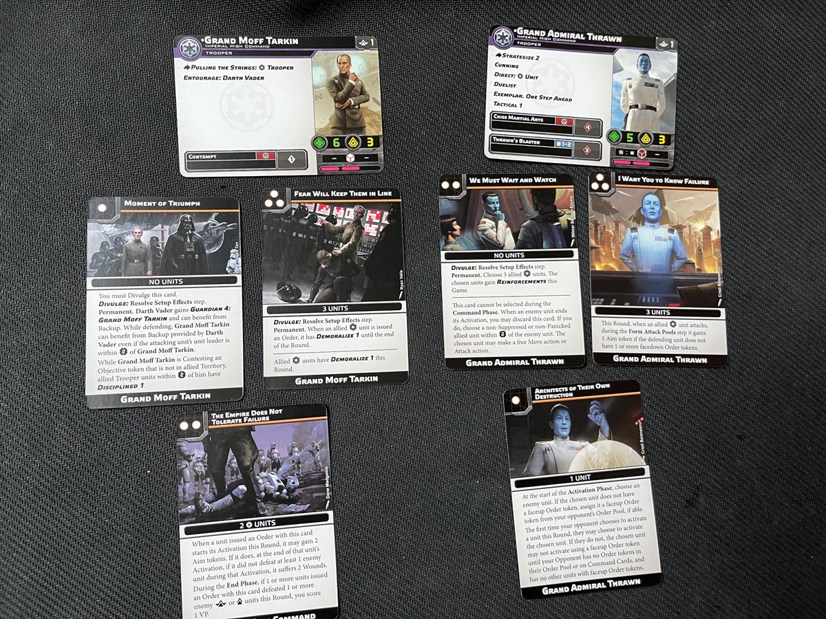 Each of the Characters basically has their own batch of Command/Upgrade Cards you can take with them. Sidenote: I forgot to include Director Krennic’s Command Cards in the picture below.
