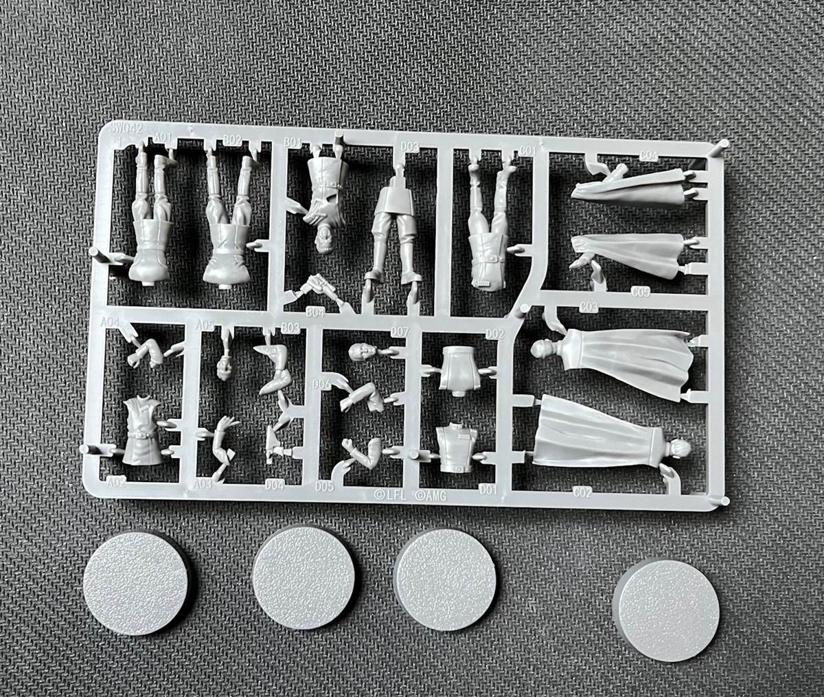 This was pretty easy build. As you can see each of the bits are labeled with a letter and number on the sprue. Each letter is associated with a specific character so just clip those out in batches and it should be an “easy peasy” build.